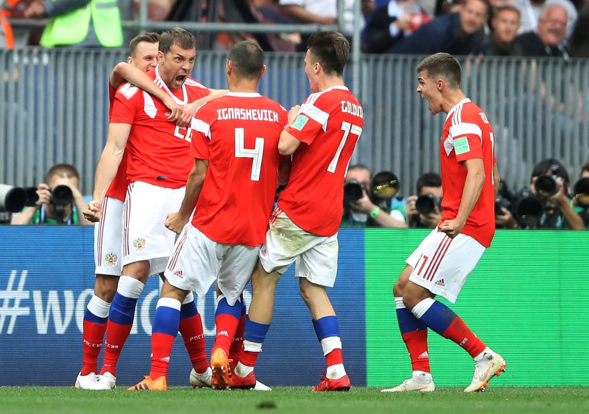 وكانت عودة السعودية إلى كأس العالم لأول مرة بعد غياب 12 عاما مخيبة لآمال الجماهير حيث منيت شباك الحارس عبد الله المعيوف بهدف مبكر بعد 12 دقيقة بضربة رأس من يوري جازينسكي بعد تمريرة متقنة من ألكسندر جولوفين.