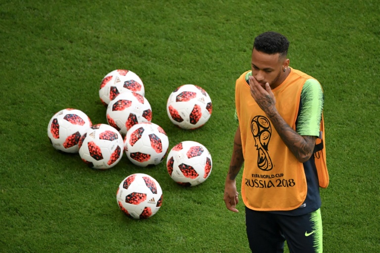 وخاض لاعب باريس سان جرمان الفرنسي في مطلع حزيران/يونيو، أول مباراة له منذ تعرضه في أواخر شباط/فبراير، لكسر في مشط القدم تطلب عملية جراحية. وخلال الدور الأول في المونديال، لم يقدم نيمار أداءه المعهود، اذ بالغ في السقوط خلال الاحتكاكات مع اللاعبين المنافسين، ولم يقدم لمحاته اللامعة، واكتفى بهدف في ثلاث مباريات.