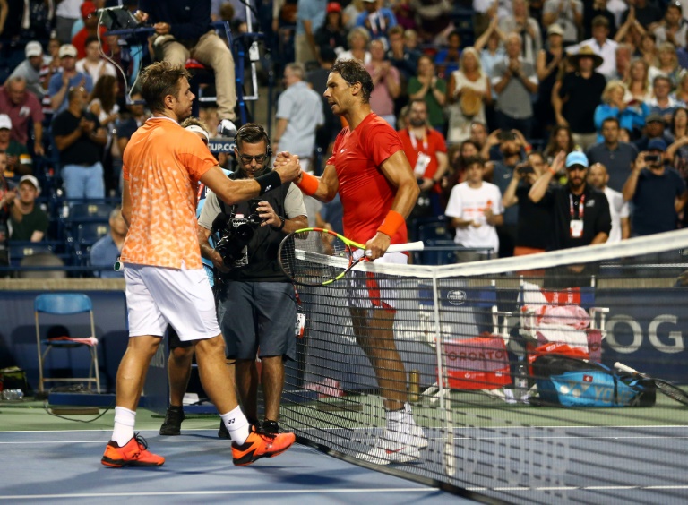 حسم الاسباني رافايل نادال المصنف أول موقعته مع السويسري العائد ستانيسلاس فافرينكا 7-5 و7-6 (7-4) في مباراة أوقفتها الأمطار 45 دقيقة، وتأهل الخميس إلى ربع نهائي دورة تورونتو الكندية لكرة المضرب، إحدى دورات الماسترز للألف نقطة.