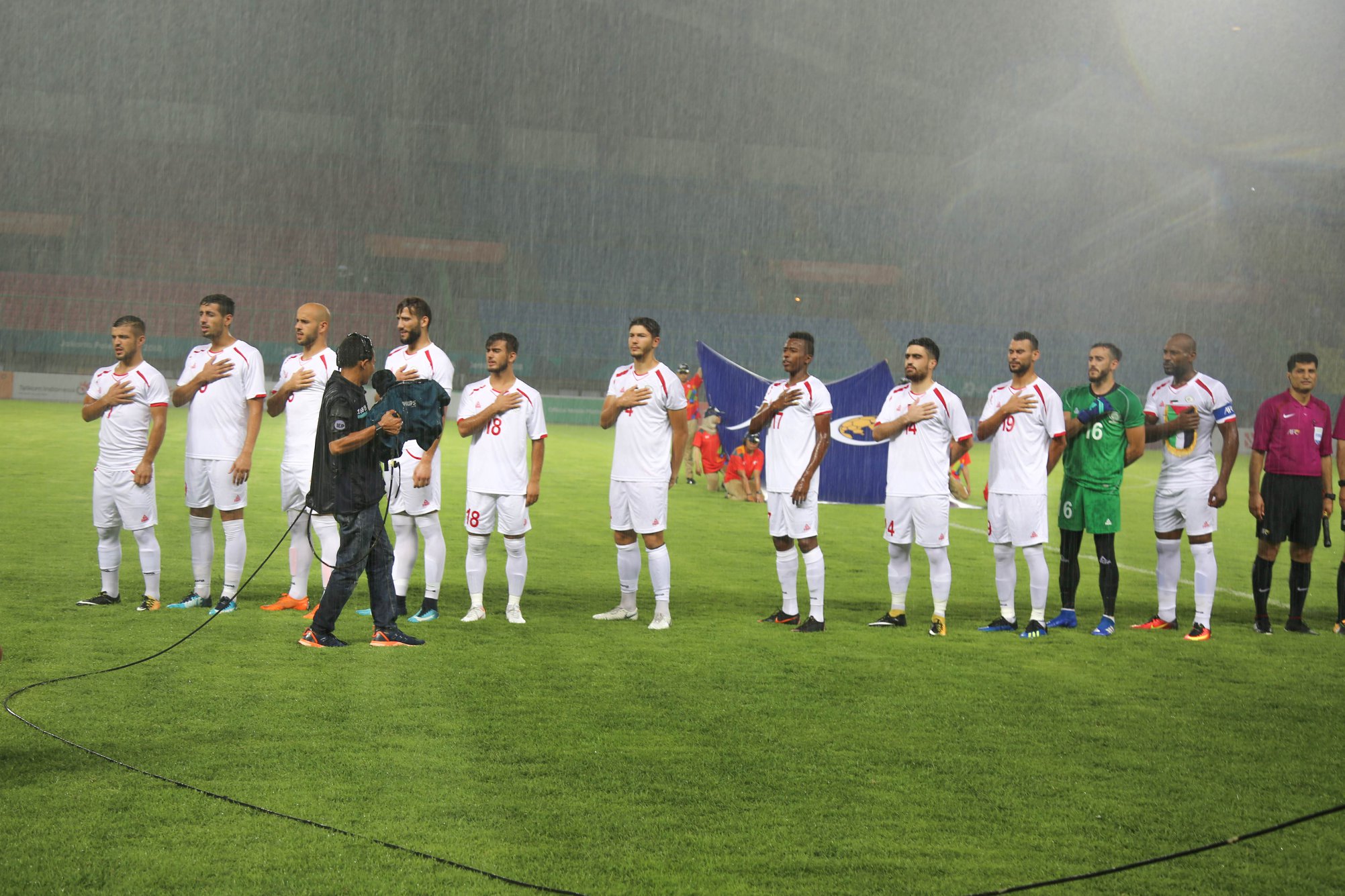 ودخل منتخبنا المباراة بتشكيل جرى عليه عدة تغييرات من قبل المدير الفني للمنتخب أيمن صندوقة، فشارك رامي حمادة حارس مرمى وأمامه احمد قطميش وعبد اللطيف البهداري وميلاد تيرمانيني وعمر الشريف، ومتوسط الميدان محمد باسم، وأمامه الخماسي سامح مراعبة ومحمود أبو وردة ومحمد عبيد وعدي دباغ ومحمود يوسف.