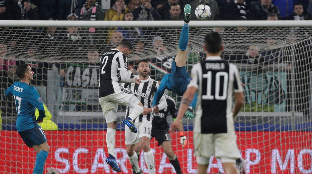 وسجل رونالدو هدفه عبر كرة مقصية خلفية رائعة في ذهاب الدور ربع النهائي لمسابقة دوري الأبطال في الثالث من نيسان/أبريل، والتي فاز فيها فريقه 3-صفر، في طريقه لإحراز اللقب الثالث تواليا له في المسابقة.