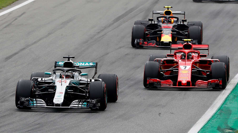 ودخل بوتاس الى حظيرة الفريق في اللفة 36، تاركا المنافسة مفتوحة بين رايكونن المتصدر وهاميلتون خلفه، قبل أن يتمكن الأخير من توجيه ضربة قاضية لفيراري على “حلبتها”، بتخطيه رايكونن بمناورة جريئة عند المنعطف الأول في اللفة 45 (من أصل 53).
