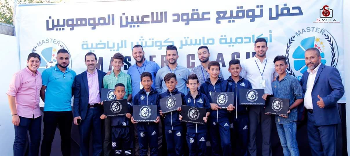 بحضور الرئيس الفخري للأكاديمية الدكتور عرفات الوزني ، والمدير الأداري عماد الوزني ،والمدير الفني محمود ابوعبيد , بادرت اكاديمية ماستر كوتش الرياضية التابعة لشبكة كوورة فلسطين بتوقيع عقد رعاية وإدارة اعمال لـ 8 لاعبين موهوبين كخطوة أولى منذ عام ونصف من تأسيس الاكاديمية