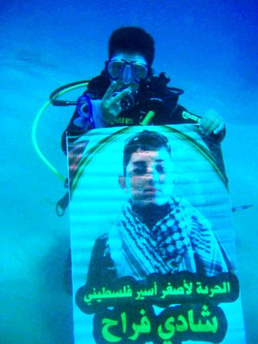 أصغر غواص فلسطيني يتضامن مع اصغر أسير فلسطيني