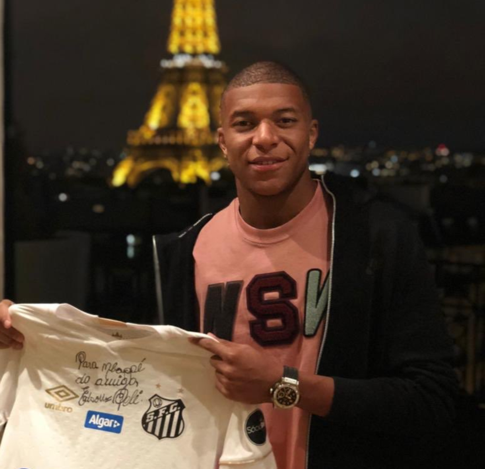 وقام مبابي الذي غاب عن مباراة فريقه ضد رين (3-1) الأحد في المرحلة السادسة من الدوري الفرنسي لكرة القدم بسبب الإيقاف، بنشر صورة له مبتسما مع قميص النادي الوحيد لبيليه، في صورة ظهر في خلفيتها برج إيفل.