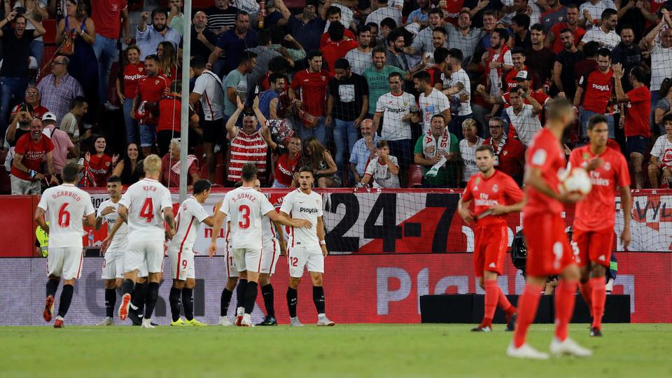 أهدر ريال مدريد فرصة الانفراد بصدارة الدوري الإسباني لكرة القدم، بعدما تلقى خسارة مذلة صفر – 3 أمام مضيفه إشبيلية يوم الأربعاء في المرحلة السادسة للبطولة.
