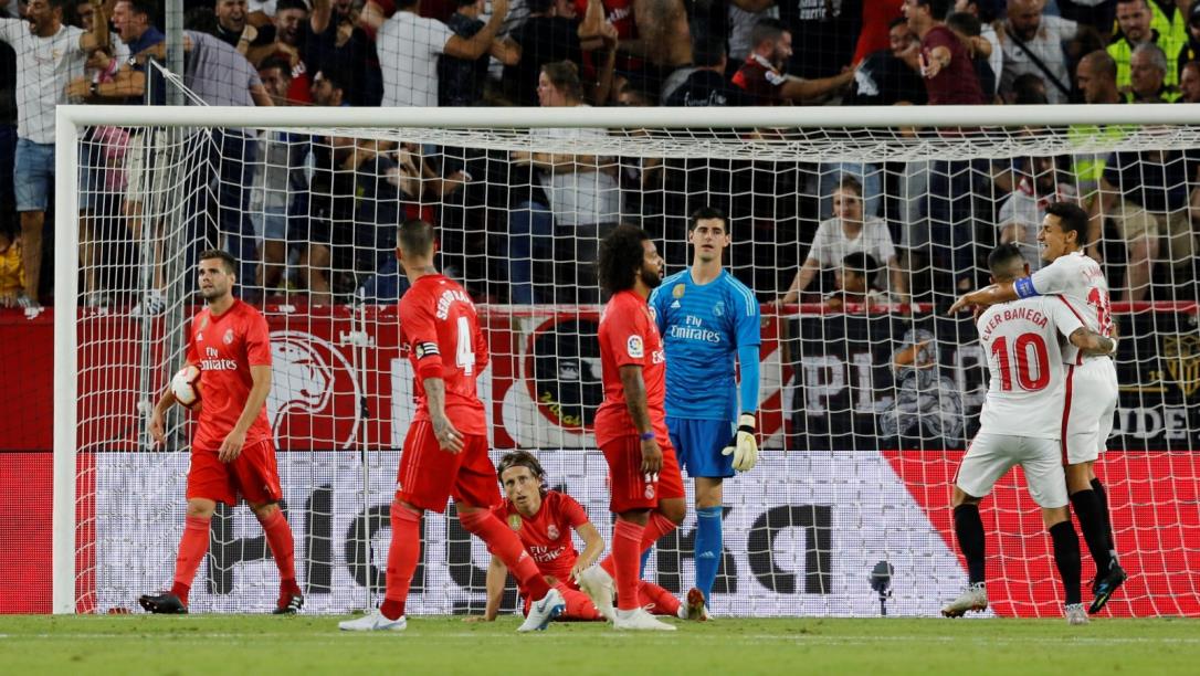 ومنحت هزيمة برشلونة المفاجئة الفرصة لريال مدريد لاقتناص الصدارة بفارق ثلاث نقاط لكن بطل أوروبا تلقى درسا قاسيا على يد أشبيلية الذي أحرز جميع أهدافه في الشوط الأول وهي الهزيمة الأولى لريال مع المدرب يولن لوبتيجي.