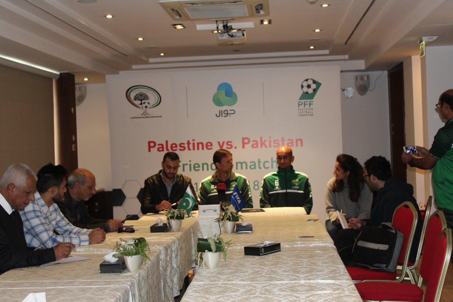 بحضور المراقب الدولي علي جبريل مدير دائرة المسابقات في الاتحاد الذي قاد اللقاء و الدكتور سبع كوكش ، علاء حالوب ، جبريل جوهر ،عمر الجعفري وليد الفسفوس، جبر جبارين من الجانب الفلسطيني حضرمن الجانب الباكستاني جوزيه انطونيو وحكيم رحمانوف .