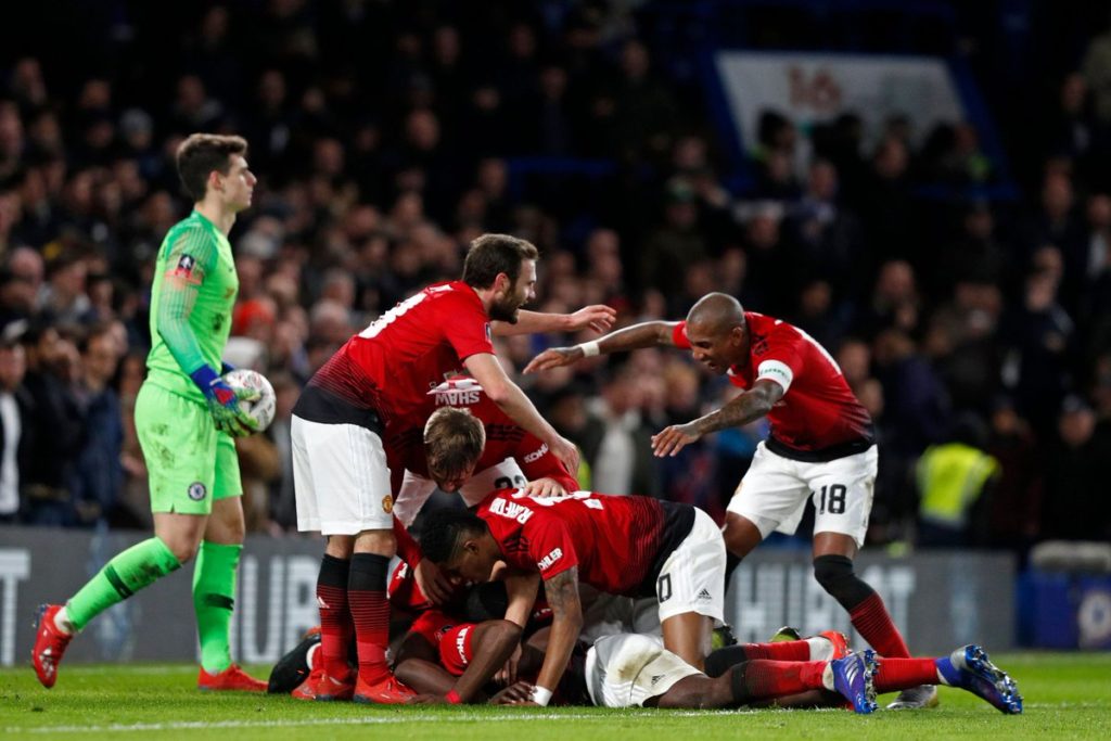 تأهل فريق مانشستر يونايتد لدور الثمانية لكأس الاتحاد الإنجليزي لكرة القدم بعد فوزه على مضيفه تشيلسي 2 – صفر يوم الاثنين في دور الستة عشر.