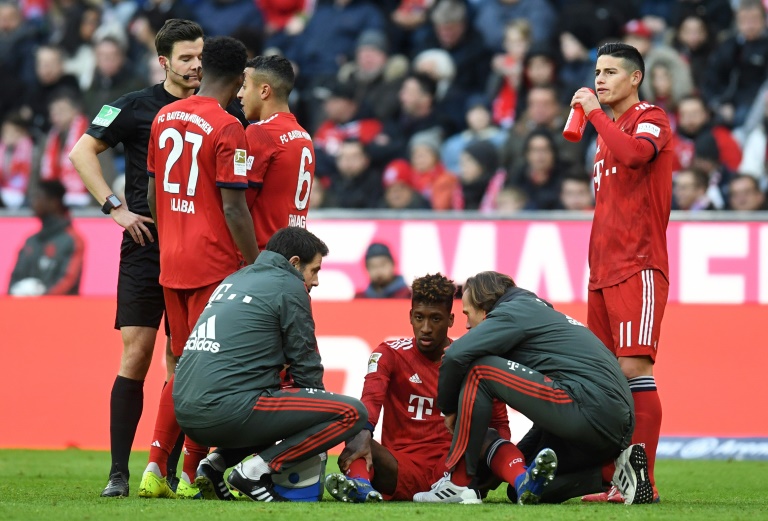 وتعج عيادة بايرن بالمصابين مع الفرنسيين فرانك ريبيري الذي يعاني من التهاب في المعدة، وكينغسلي كومان، المصاب بتمزق في فخذه الايسر أمام هيرتا برلين الاسبوع الماضي، ولاعب الوسط كورنتان توليسو العائد الى التمارين في شباط/ فبراير بعد تمزق الرباط الصليبي للركبة اليمنى في أيلول/سبتمبر الماضي، والمدافع النمسوي دافيد ألابا (الأوتار) ولاعب الوسط ليون غوريتسكا (الكاحل)، والجناح الهولندي آريين روبن (الفخذ).