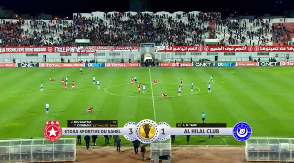 وسجل كل من زياد بوغطاس (30) وياسين الشيخاوي من ركلتي جزاء (34 و81) ثلاثية الفريق التونسي فيما أحرز أطهر الطاهر الهدف الوحيد للهلال السوداني في الدقيقة 59.