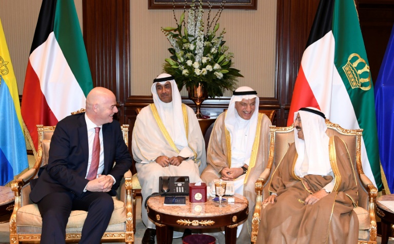 وأفادت وكالة الأنباء الكويتية الرسمية (كونا) أن الأمير استقبل إنفانتينو برفقة رئيس الاتحاد الكويتي الشيخ أحمد يوسف السعود الصباح، وذلك غداة وصول رئيس فيفا الى الكويت فجر السبت.