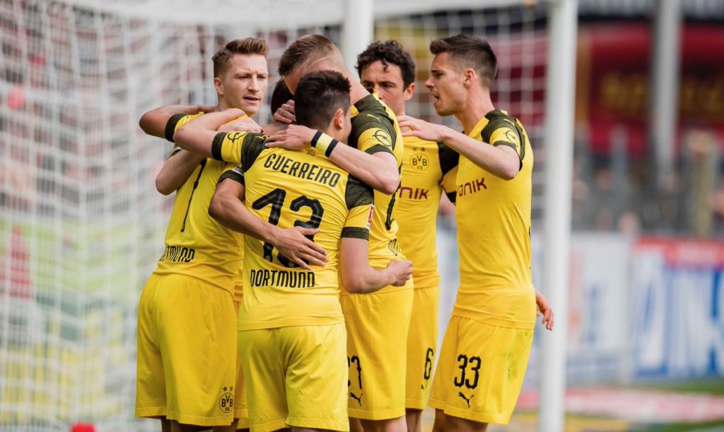 واصل بوروسيا دورتموند مطاردة غريمه بايرن ميونخ في سباق المنافسة على لقب الدوري الألماني لكرة القدم بعدما حقق انتصاره الثاني على التوالي بالمسابقة، إثر فوزه الثمين والمستحق 4 – صفر على مضيفه فرايبورغ يوم الأحد في المرحلة الثلاثين للمسابقة.
