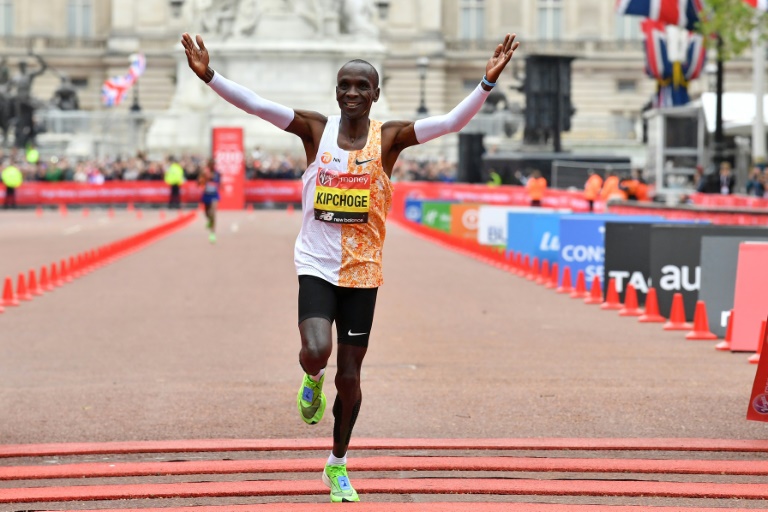 حقق العداء الكيني إليود كيبوشيغي فوزا قياسيا رابعا في ماراتون لندن الأحد، بزمن هو ثاني أسرع توقيت في تاريخ منافسات الماراتون، بفارق نحو دقيقة عن الرقم القياسي الذي حققه العام الماضي في برلين.