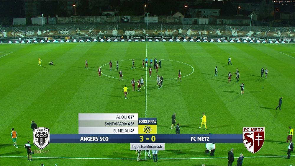 وجاء سقوط متز الأبرز أمام مضيفه أنجيه الذي كان خسر من ليون 0-6 الأسبوع الماضي، بثلاثية نظيفة تعاقب على تسجيلها كل الجزائري فريد الملالي ابن الـ22 عاماً في الدقيقة 4 وبابتيست سانتاماريا في الدقيقة 43 و المهاجم المغربي رشيد عليوي في الدقيقة 67.