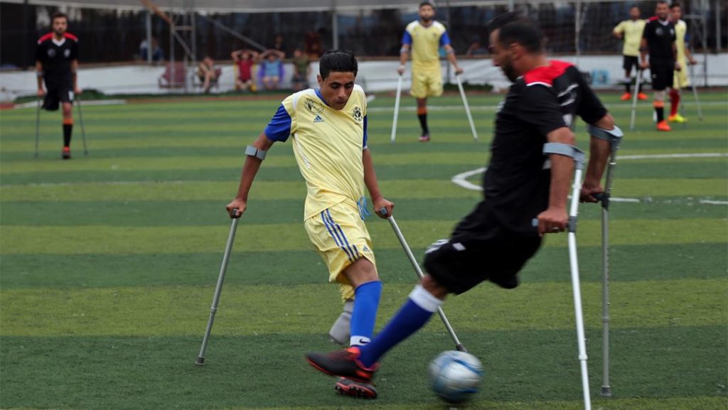 في ملعب لكرة القدم وسط مدينة غزة، خاض فريقان لمبتوري الأطراف افتتاح أول بطولة محلية لهم على مستوى القطاع، تنظمها جمعية فلسطين لكرة القدم، برعاية اللجنة الدولية للصليب الأحمر.
