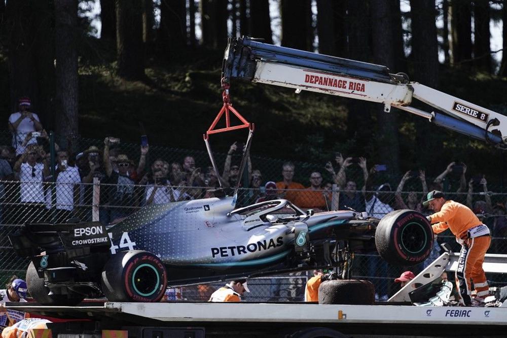 وفقد هاميلتون متصدر الترتيب العام لبطولة 2019، السيطرة على سيارته الفضية عند أحد المنعطفات المتعرجة للحلبة البلجيكية الشهيرة، واصطدم بقوة بالإطارات المطاطية الموضوعة بشكل أمام الجدار الخارجي لتخفيف حدة الارتطام.