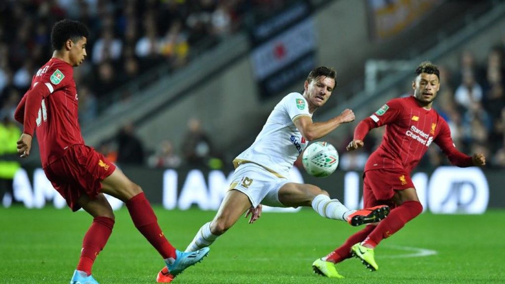 وخاض ليفربول المواجهة على ارض ميلتون كينز دونز من المستوى الثالث في اول لقاء بين الفريقين في جميع المسابقات.
