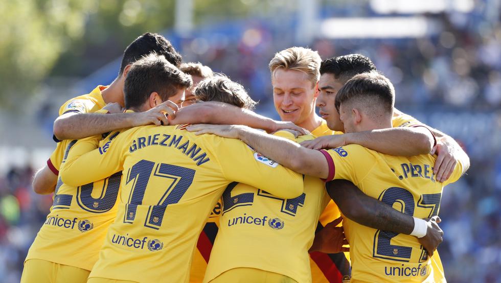 حقق برشلونة فوزه الأول خارج قواعده في الدوري الإسباني لكرة القدم هذا الموسم، عندما أسقط مضيفه خيتافي 2-صفر بغياب نجمه الأرجنتيني ليونيل ميسي، السبت ضمن منافسات المرحلة السابعة.