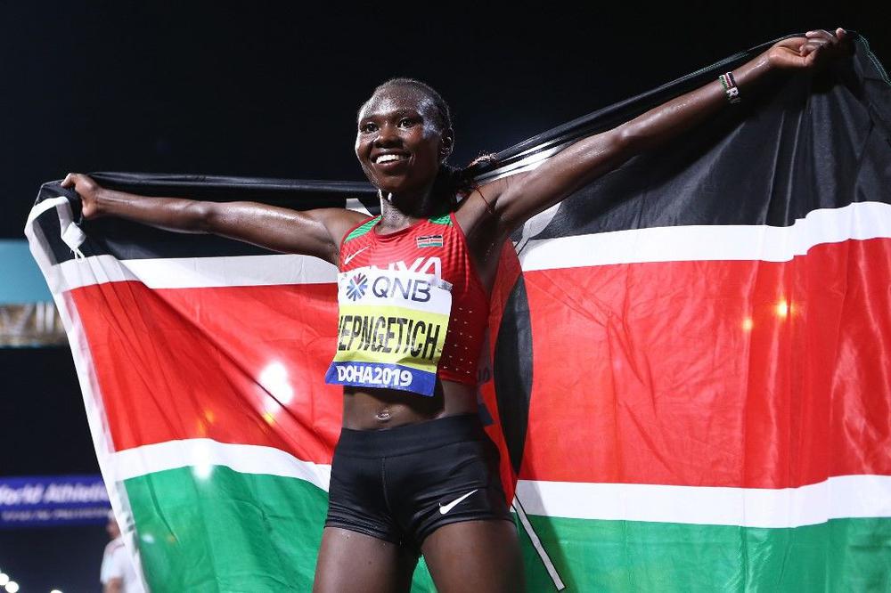 وسجلت الكینیة زمنا قدره 2.32.43 ساعة لتحرز اول لقب عالمي لھا.