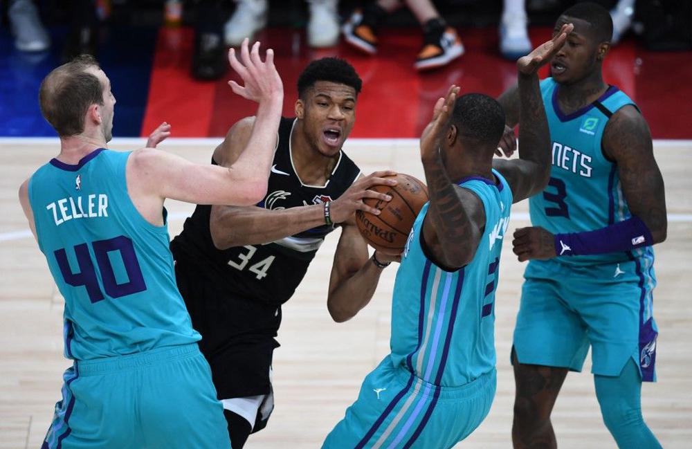 وكان باكس بطيئا في الشوط الاول وتخلف 55-50 أمام هورنتس قبل ان يعادله في نهاية الربع الثالث. لكن يانيس، أفضل لاعب في الدوري، فرض نفسه بكراته الساحقة تحت السلة، فأنهى المباراة برصيد 30 نقطة و16 متابعة.
