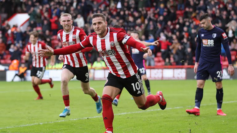ارتقى شيفيلد يونايتد إلى المركز الخامس موقتا في الدوري الإنكليزي الممتاز بكرة القدم، بفوزه على ضيفه بورنموث 2-1 الأحد ضمن المرحلة السادسة والعشرين.