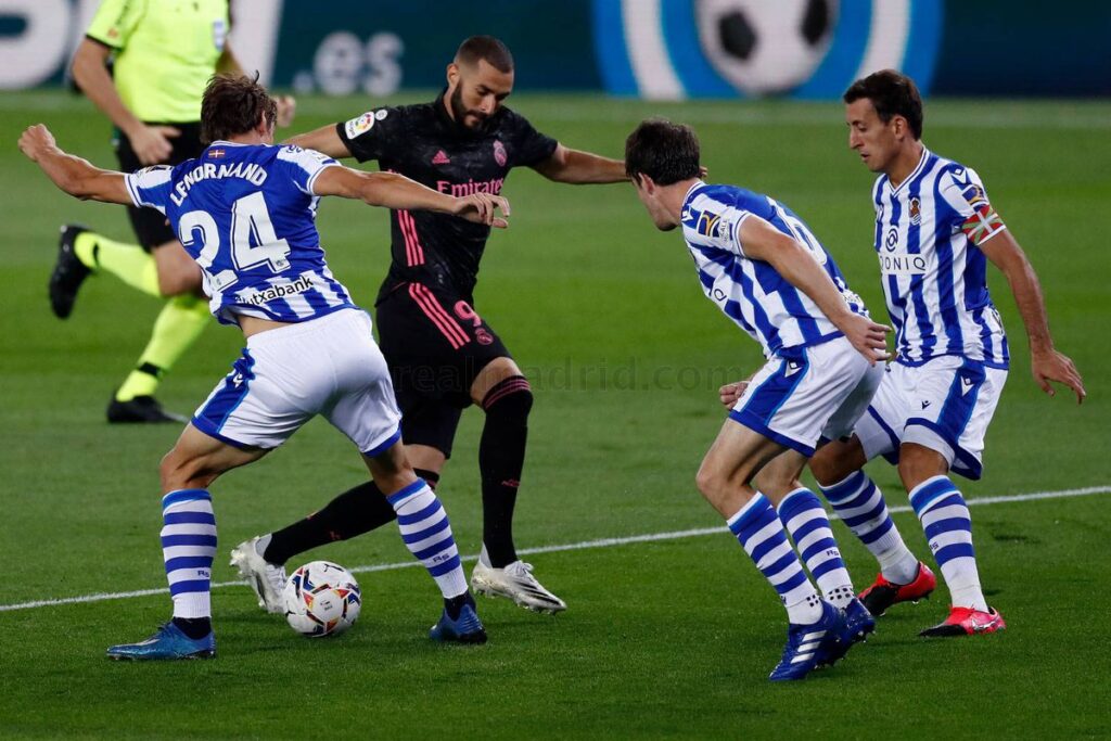 وفشل ريال مدريد في الوصول لشباك صاحب الملعب سوسيداد الذي أحبط دفاعه كافة الفرص التي أتيحت للملكي.