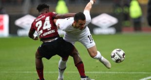 وكالة الأنباء الإسبانية EFE تعادل آينتراخت فرانكفورت، مع مضيفه نورنبرغ (1-1) اليوم الأحد، على ملعب فرنكن شتاديون، بالجولة الـ9 من بطولة الدوري الألماني “البوندسليجا”. افتتح أصحاب الأرض، التسجيل عن طريق المهاجم السلوفاكي آدم زريلاك في الدقيقة (78)، وبالدقيقة (90+2) عدل سيباستيان هولر، النتيجة للضيوف، رافضًا أن تنتهي المباراة بخسارة فريقه. وبهذه ...