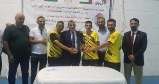 رياضة 90 توج نادي شباب أبو ديس بلقب بطولة الدرع لكرة الطاولة، التي أقيمت يوم السبت، في صالة الشهيد أبو عمار الشبابية، برعاية اللواء جبريل الرجوب، رئيس اللجنة الأولمبية. وشارك في البطولة 13 فريقا هم،: أرثوذكسي القدس، إبداع الدهيشة، الموظفين، هلال القدس، صور باهر، إسلامي رام الله، أبو ديس، جمعية ...