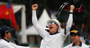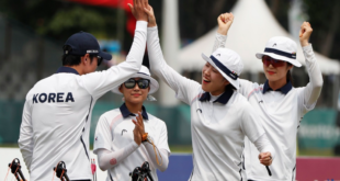 AFP واصلت كوريا الجنوبية اليوم هيمنتها على منافسات الرماية بالقوس والسهم بعد أن حصدت الذهبية الثالثة عندما توّج فريق الرجال بالمركز الأول (Men’s team compound) في دورة الألعاب الآسيوية في إندونيسيا. وكان الكوريون ضربوا بقوة في وقت سابق من اليوم، عندما أحرز كيم ووجين ذهبية فردي الرجال (Recurve Men’s Individual) في ...
