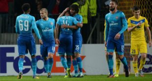فاز أرسنال الإنجليزي على مضيفه باتي بيراسوف البيلاروسي بأربعة أهداف مقابل هدفين، اليوم الخميس، ضمن منافسات المرحلة الثانية للمجموعة الثامنة، من الدوري الأوروبي لكرة القدم. وسجل رباعية المدفعجية، ثيو والكوت في الدقيقتين 9 و22، وروب هولدينغ في الدقيقة 25، وأوليفيه جيرو في الدقيقة 49 (من ضربة جزاء)، بينما سجل هدفي ...