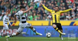 حقق بروسيا دورتموند فوزًا هامًا وبشق النفس على حساب مضيفه بروسيا مونشينغلادباخ بثلاثة أهداف مقابل هدفين، اليوم السبت، ضمن منافسات الجولة الثلاثين من الدوري الألماني لكرة القدم. وسجل ثلاثية الجراد الأصفر، ماركو ريوس في الدقيقة 10 (من ضربة جزاء)، وبيير إميريك أوباميانغ في الدقيقة 59، ورافائيل غاريرو في الدقيقة 87. ...