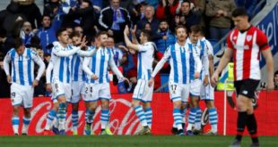 تغلب ريال سوسييداد على ضيفه أتلتيك بيلباو 2-1، اليوم السبت، في ديربي الباسك، ضمن منافسات الأسبوع الثاني والعشرين من الدوري الإسباني لكرة القدم. سجل ميكيل اويارزابال في الدقيقة 16، وويليان خوسي دي سيلفا في الدقيقة 45 لسوسييداد، وراؤول غارسيا في الدقيقة 82 لبيلباو. ليرتفع رصيد سوسييداد لـ30 نقطة في المركز ...