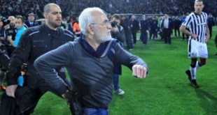 AFP صدرت الاثنين مذكرة توقيف بحق رئيس نادي باوك سالونيكي إيفان سافيديس لدخوله أرض ملعب مباراة فريقه ضد ضيفه أيك أثينا مسلحا بمسدس، بحسب ما أفادت مصادر في الشرطة وكالة فرانس برس. وقالت المصادر ان سافيديس، وهو رجل أعمال يوناني روسي، يحمل رخصة للمسدس، الا ان البحث جار لتوقيفه على ...