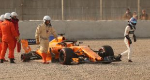 رويترز قطع فرناندو الونسو ست لفات على حلبة برشلونة قبل أن تندفع سيارته نحو الحصى عقب انفصال إطار عن سيارته مكلارين في بداية التجارب التي تسبق انطلاق الموسم الجديد لبطولة العالم لسباقات فورمولا 1 للسيارات يوم الاثنين. وقلل بطل العالم السابق، الذي بدأ شراكة جديدة على صعيد المحركات مع رينو ...