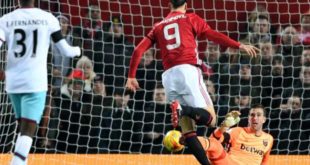 هيئة التحرير تأهل مانشستر يونايتد إلى نصف نهائي كأس الرابطة الإنجليزية للأندية المحترفة لكرة القدم، بعدما سحق ضيفه وست هام يونايتد بأربعة أهداف مقابل هدف الأربعاء في ربع النهائي. وتناوب على تسجيل أهداف الشياطين الحمر كل من: زلاتان إبراهيموفيتش في الدقيقتين 2 و90، وأنتوني مارسيال في الدقيقتين 48 و62، بينما ...