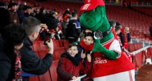 وكالات عرض النجم الألماني مسعود أوزيل -لاعب وسط أرسنال- دفع راتب الموظف الذي يرتدي تميمة النادي من أجل بقائه، بعد قرار أرسنال بفصله من أجل تقليل النفقات. وقرر النادي التخلص من جيري كوي -الذي كان له دور في التواصل مع الجماهير خارج وداخل ملعب الإمارات، عندما كان يرتدي ملابس الديناصور ...