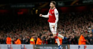 AFP وضع ارسنال الانكليزي قدما في الدور نصف النهائي بفوزه الكبير على ضيفه سسكا موسكو الروسي 4-1 الخميس في لندن في ذهاب الدور ربع النهائي لمسابقة الدوري الاوروبي “يوروبا ليغ” لكرة القدم. وسجل الويلزي ارون رامسي (9 و28) والفرنسي الكسندر لاكازيت (23 من ركلة جزاء و35) اهداف ارسنال، والكسندر غولوفين ...