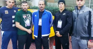 رياضة 90 وصل المنتخب الفلسطيني للملاكمة إلى مينة اسطنبول التركية للمشاركة في بطولة احمد كوميرت الدولية ، وضم الوفد كل من رئيس الاتحاد فوزي العصافرة والمدرب الدولي وليد البيتوني وكل من الملاكم عز الدين عويسات وقاسم أبو الضبعات وصالح عيسى، فيما منع الاحتلال الملاكمان قاسم رجب وحسن اعطيوي من السفر ...