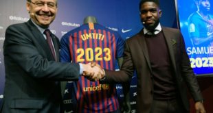 AFP وصلت قيمة البند الجزائي لتحرير الفرنسي صامويل أومتيتي مدافع نادي برشلونة بطل الدوري الاسباني في كرة القدم، الى 500 مليون يورو، بحسب ما أعلن رئيس النادي جوسيب ماريا بارتوميو الاثنين خلال توقيع المدافع الدولي تمديدا لعقده مع النادي الكاتالوني. وكان برشلونة قد أعلن الأحد تمديد عقد اللاعب البالغ 24 ...