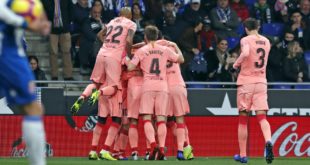 DPA قاد الأرجنتيني ليونيل ميسي فريقه، برشلونة، للفوز كبير على مضيفه إسبانيول 4 / صفر، خلال المباراة التي جمعتهما يوم السبت في ديربي “كاتالونيا” بالجولة الخامسة عشر من الدوري الإسباني والتي شهدت أيضا تعادل إشبيلية مع فالنسيا 1/1 وفوز أتلتيكو مدريد على ألافيس 3 / صفر وسيلتا فيغو على فياريال ...