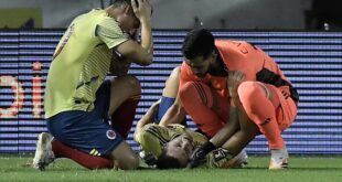 تعرض الظهير الأيمن لمنتخب كولومبيا سانتياغو أرياس لإصابة مروعة خلال استضافة منتخب “الكافيتيروس” نظيره فينزويلا، وذلك ضمن منافسات الجولة الأولى من تصفيات بطولة كأس العالم التي ستحتضنها قطر شتاء عام 2022. وشهدت الدقيقة الثامنة من المباراة محاولة سانتياغو أرياس استرجاع الكرة من لاعب منتخب فينزويلا وفريق غرناطة الإسباني دراوين ماتسيتش، لكن ذلك تسبب له في كسر في ...