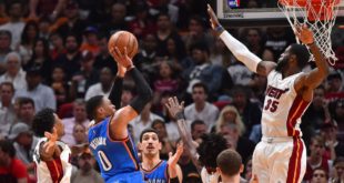 هيئة التحرير قاد النجم راسل وستبروك فريقه أوكلاهوما سيتي ثاندر للفوز على ميامي هيت ب 106 نقاط مقابل 94، حينما سجل الثلاثية المزدوجة “تريبل دبل” ال 52 في مسيرته، ضمن مباريات الدوري الاميركي لكرة السلة للمحترفين. وسجل وستبروك 27 نقطة، وأضاف 17 متابعة و11 تمريرة حاسمة خلال اللقاء. يذكر إلى أن هذه هي ...