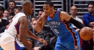 هيئة التحرير واصل أوكلاهوما سيتي ثاندر عروضه القوية محققًا فوزه الرابع تواليًا وهده المرة على حساب لوس أنجليس كليبرز بصعوبة بالغة ب 85 نقطة مقابل 83، ليكون الفريق الوحيد في المجموعة الغربي الذي لم يتلقى أي هزيمة، ضمن منافسات الدوري الأميركي لكرة السلة للمحترفين. وفرض راسل وستبروك نفسه نجما لمباراة فريقه بتسجيله ...